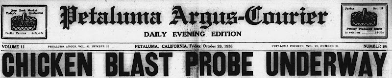 “A blast that shook the outskirts of Petaluma on Thursday night and blew its ‘advertising chicken’ to smithereens,” the Petaluma paper announced. The Colony Club shook like there was an earthquake. A man who lived about a mile away said “it seemed as though the walls would fall in.” The explosion “scared the wits out of passing motorists,” the Press Democrat observed, and plaster chicken nuggets were “littering the highway with chunks of stucco, twisted wire and sticks.”