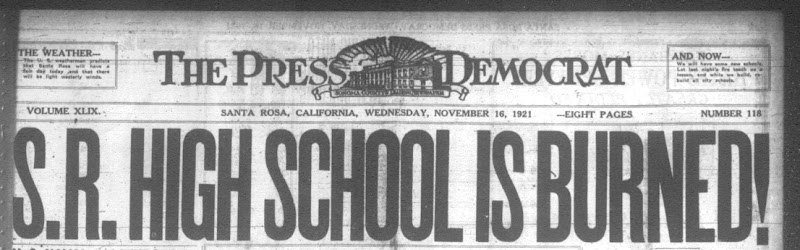Essie Vaughan woke up because someone was ringing her doorbell and would not stop. She was probably used to occasional late visitors to their home on Humboldt street because her husband Marvin was Justice of the Peace; sometimes couples cannot bear to wait another moment before being married. But this November night was different. Waiting outside were four kids with an urgent message – the towering building across the street was on fire. Santa Rosa High School.